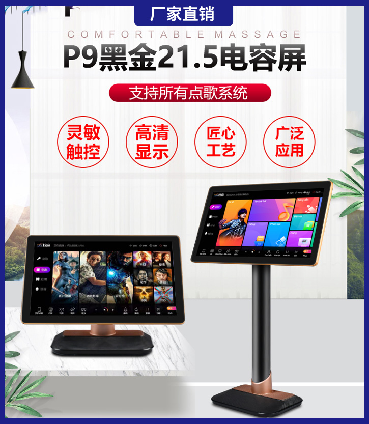 udor 21.5寸黑金色KTV电容屏点歌机触摸屏显示器高清灵敏点歌台